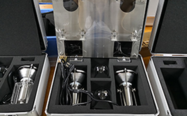 此定制版雙燈節能隔熱玻璃展示套件兩邊都有一盞帶底座的150w飛利浦紅外線燈,一個方底魔鏡,可調試玻璃卡槽,和一臺紅外功率計。兩邊可同時測試,可快速直觀的進行對比測試。