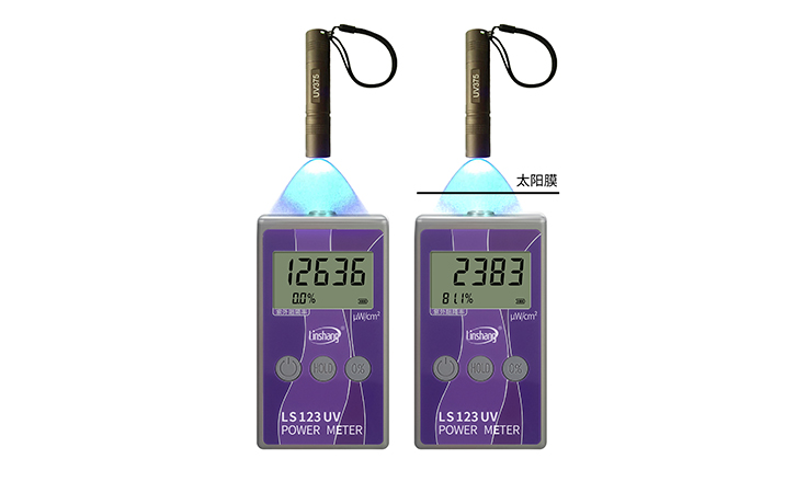 林上LS123便攜式紫外功率計適用于防爆膜,太陽膜隔紫外線性能測試,可以同時測試紫外輻照強度和紫外線的阻隔率,也可直接在太陽下測試汽車玻璃的隔紫外線效果,LS123紫外功率計是寬譜線功率測量儀,也可用于測量紫外線的輻射能功率密度,即每平方厘米的輻射能功率。單位為:微瓦/平方厘米 (uW/cm2),探測器位于儀器的前端,使用方便快捷,測量可靠。