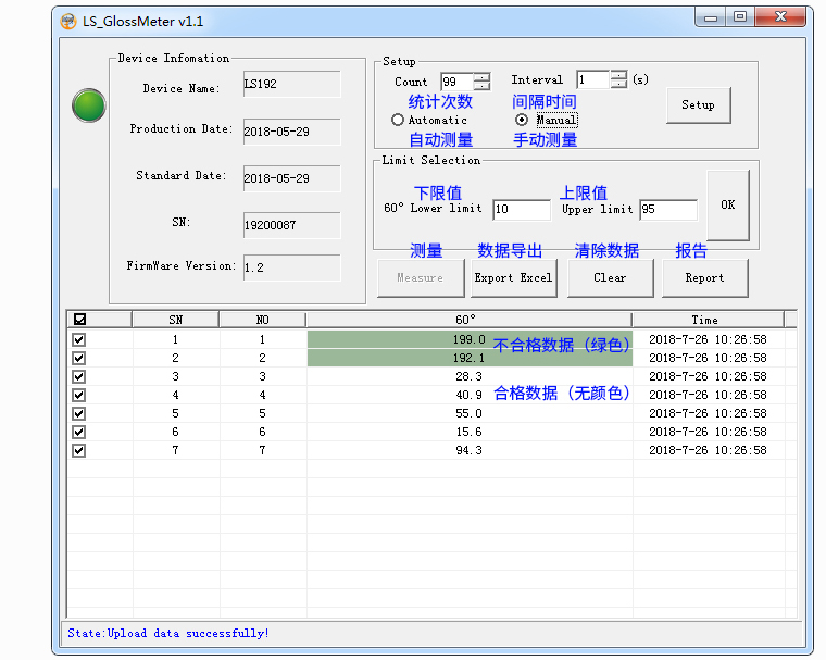 6. 光澤度儀支持USB傳輸,自帶操作軟件,可與電腦聯(lián)機(jī)操作并完成測(cè)試報(bào)告。