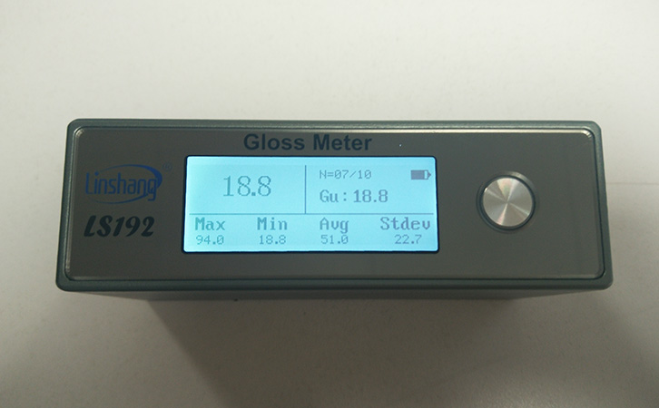 林上單角度光澤度計LS192,是確保通過計量院檢測的一級工作機,智能實時統計測量的最大值,最小值,平均值,均方差值,可以分析材料光澤度的均勻性。
