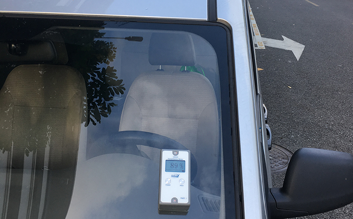 車窗貼膜玻璃的透光率,要用透光率計測量。林上科技有一款分體式透光率儀LS110。是專門用來檢測車窗貼膜玻璃透光率的。