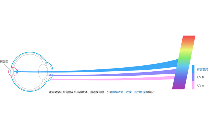 1.藍光具有很高的能量,能夠穿透晶狀體直達視網膜,導致視網膜的色素上皮細胞萎縮甚至死亡。