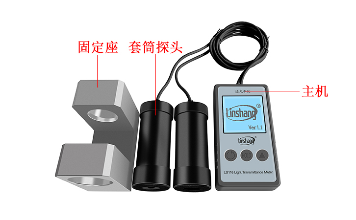2、套筒式透光率計采用全波段白光380nm-760nm,加入明視覺函數。