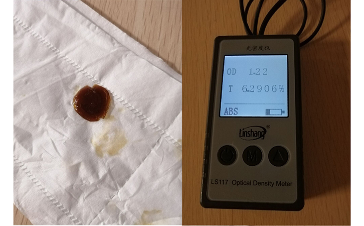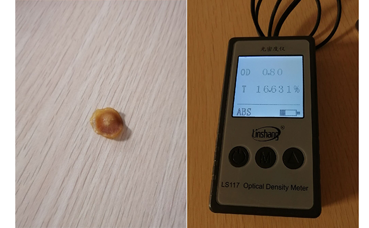 通過這幾組的測試可發現:如果參片的顏色越深,其光密度越大,如果參片的顏色越淺,其光密度越小。雖然不知道客戶需要檢測紅參片的光密度有什么用處,但是林上的LS117光密度儀是可以測試這種小物件的樣品,如果客戶需要檢測材料或是物品的光密度的可將樣品寄到林上科技有限公司,林上可免費為您測樣。
